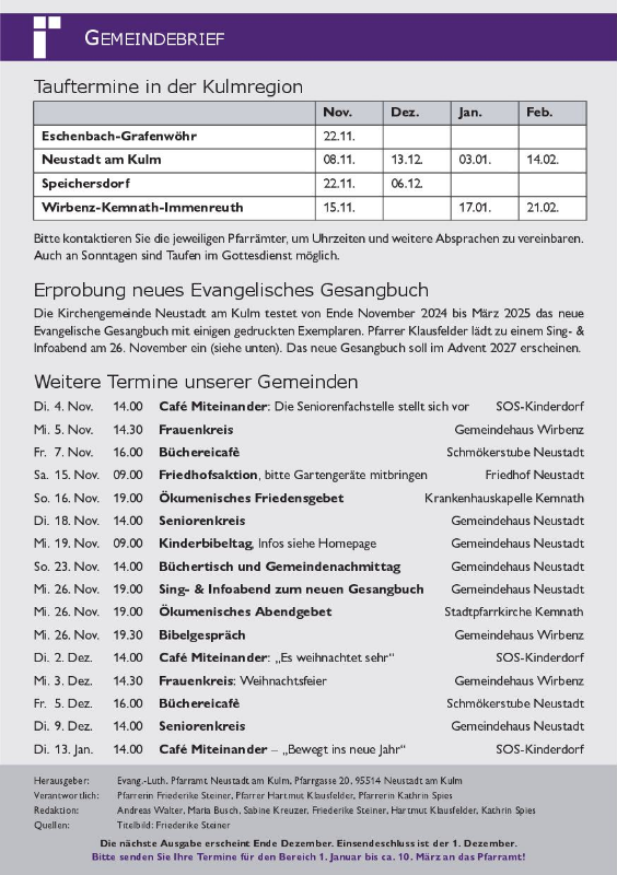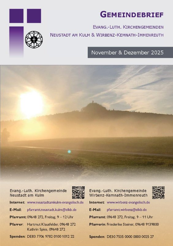 Der Gemeindebrief für November/Dezember 2025 ist erschienen (wieder im neuen Konzept). Er erscheint