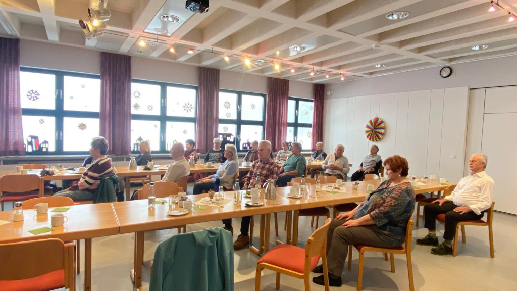 Mit der Jahreslosung, „Siehe, ich mache alles neu“, begrüßte Alfred Schuster die Gäste, die trotz des widrigen Wetters gekommen waren. Weiter stimmte er die Besucher: innen mit dem Märchen vom strahlenden Monat Januar von Elke Bräunling auf zwei gemütliche und bewegte Stunden ein. Denn nach Kaffee – Kuchen –Klatsch lud Ursula Schuster alle zu Stuhlyoga, Entspannung und Meditation ein, was großen Anklang fand. Brigitte Strößner beendete den Nachmittag mit einem Segen und lud alle zum nächsten cafe miteinander am 04.02.26 zum Bunten Treiben ein.