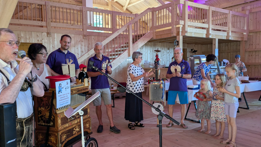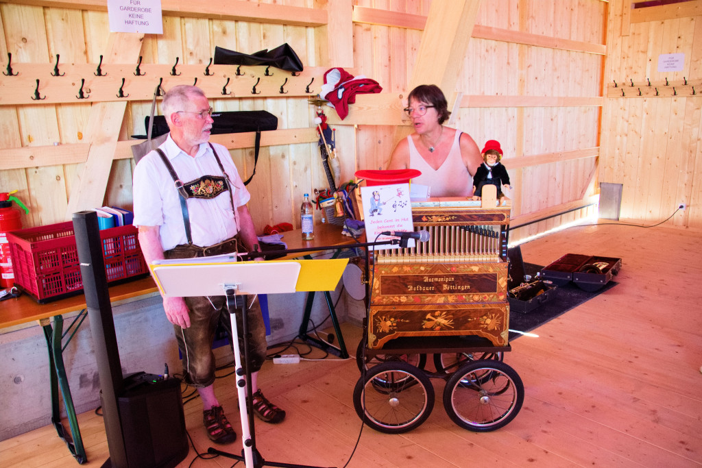 Nachmittags dann ein buntes Programm mit einem tollen Kuchenbuffet, das viele helfende Hände für uns bereitet haben, einer Kinderhüpfburg und vielen Spielen, dazu ungewöhnliche Musik aus einem Leierkasten.