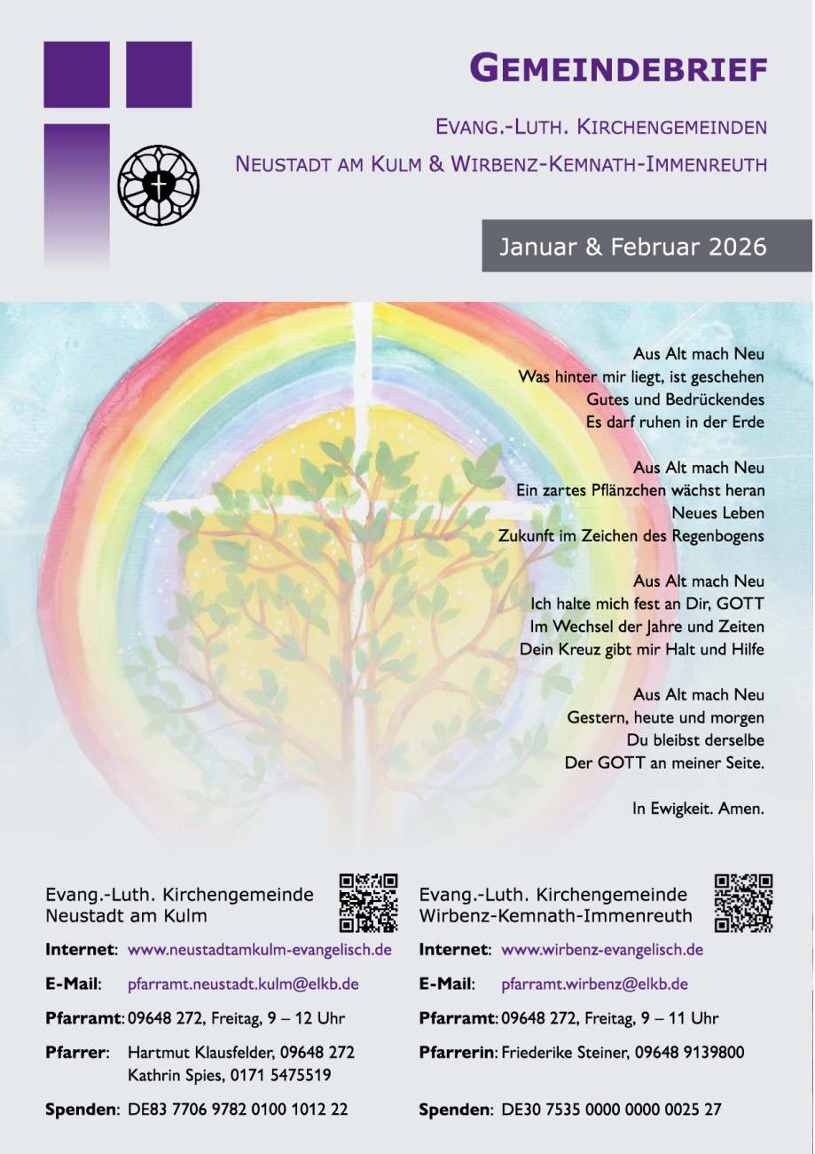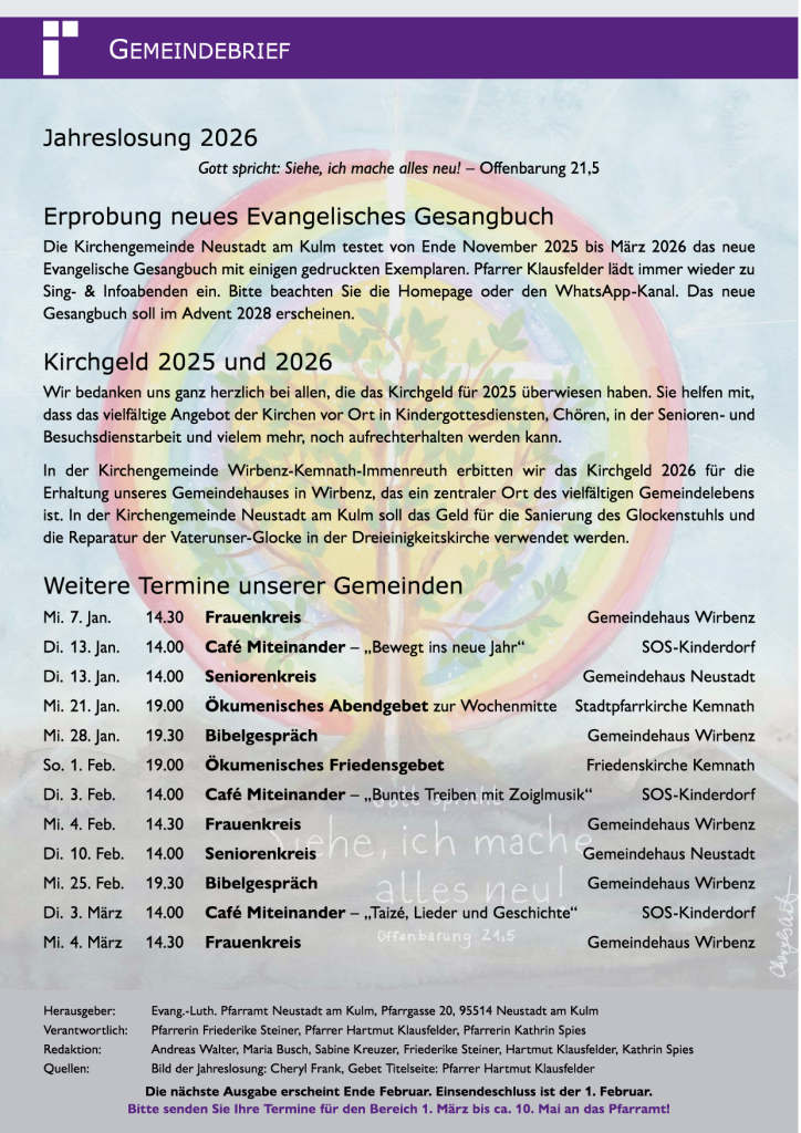 Der Gemeindebrief für Januar/Februar 2026 ist erschienen (wieder im neuen Konzept). Er erscheint