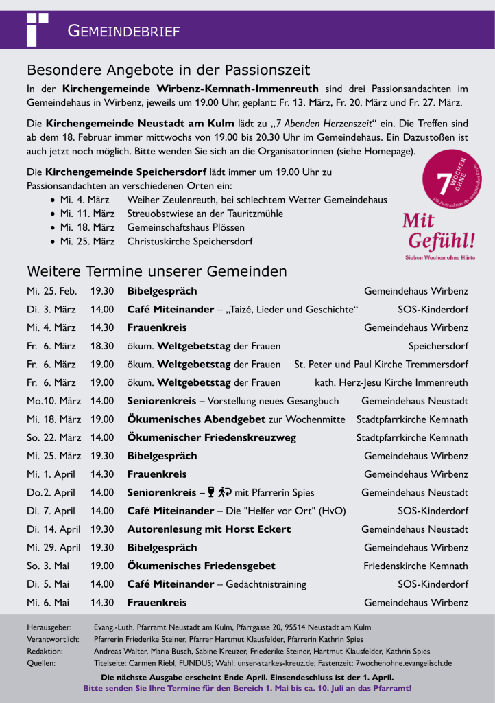 Der Gemeindebrief für März/April 2026 ist erschienen (wieder im neuen Konzept). Er erscheint