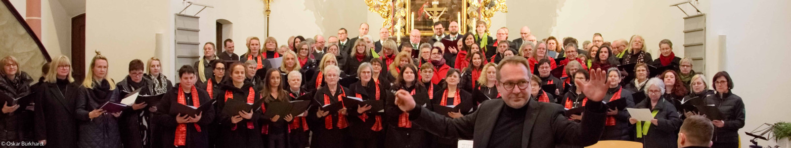 Nach Gebet, Vaterunser und Segen stellten sich alle Chormitglieder, fast 100 an der Zahl, im Altarraum auf. Während Walter Thurn an der Orgel das „Großer Gott, wir loben dich“ für die Besucher mit vollem Orgelwerk begleitete, sang der Gemeinschaftschor unter dem professionellen Dirigat des Bezirkskantors eine wunderbare Begleitstimme. Diese Erfahrung sorgte bei den Sängerinnen und Sänger für ein „Gänsehaut-Feeling“. Nach Standing-Ovation beim Applaus ließ der große Chor sehr gerne die Zugabe „Möge die Straße uns zusammenführen“ erklingen und wurde dabei leise von Orgel und Querflöte begleitet. Alle Chöre sangen in diesem Konzert mit viel Freude und Hingabe, was vom Publikum nach jedem Auftritt mit dankbarem Beifall quittiert wurde.