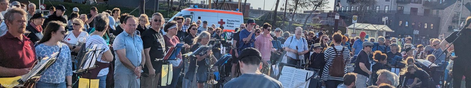 Hafenserenade in Büsum am Ankerplatz mit ca. 150 Posaunenchorbläser/innen aus ganz Deutschland. Musikalische Leitung: Christian Syperek, Landesposaunenwart in Berlin/ Brandenburg